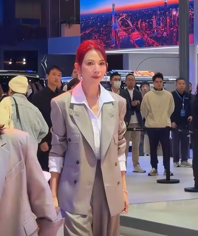 酒紅色的頭髮雖然看著就很有朝氣和氣場,但搭配上蔡少芬疲憊的面孔,就顯得不是那麼貼合了。