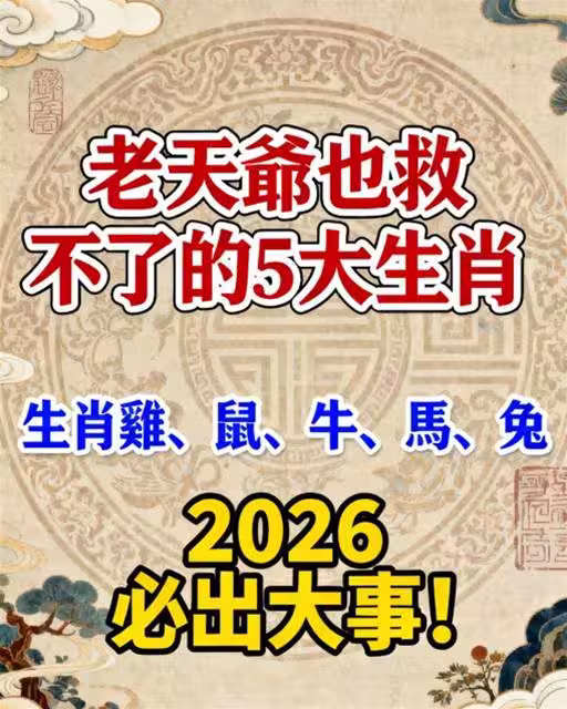 老天爺也救不了的5大生肖生肖雞、鼠、牛、馬、兔2026必出大事!