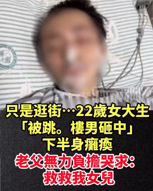 只是逛街…22歲女大生「被跳。樓男砸中」下半身癱瘓 老父無力負擔哭求:救救我女兒