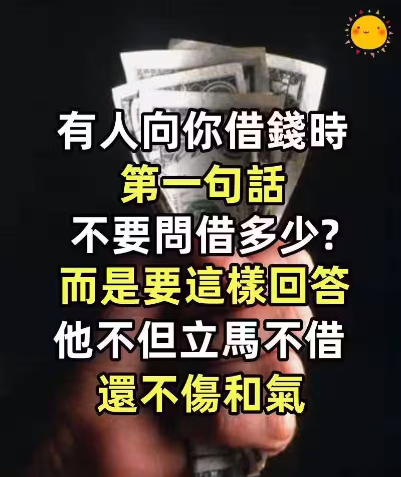 有人向你借錢時 第一句話不要問借多少!而是要這樣回答 他不但立馬不借 還不傷和氣~