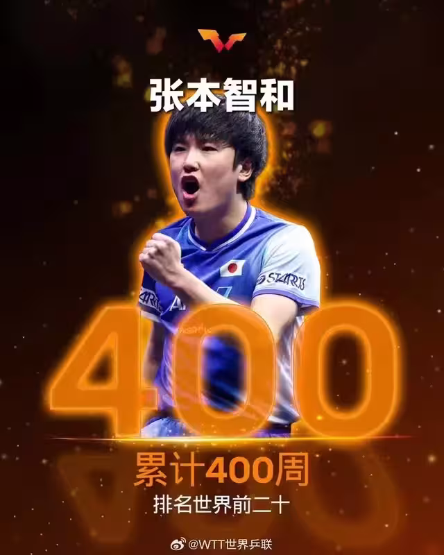 與孫穎莎一同刷新紀錄的還有日本名將張本智和,他的世界前二十累計周數突破400周。從首次亮相世界排名時的第836位,到如今成為穩居前二十位的頂尖高手,張本智和已成長為世界乒壇最具知名度的選手之一。本賽季,他延續強勢表現,先後斬獲三座WTT系列賽冠軍——WTT多哈球星挑戰賽、WTT薩格勒布挑戰賽冠軍,更在本土作戰的WTT橫濱冠軍賽中擊敗王楚欽,奪得男單冠軍,三座冠軍獎盃印證了其穩定的競技水準。