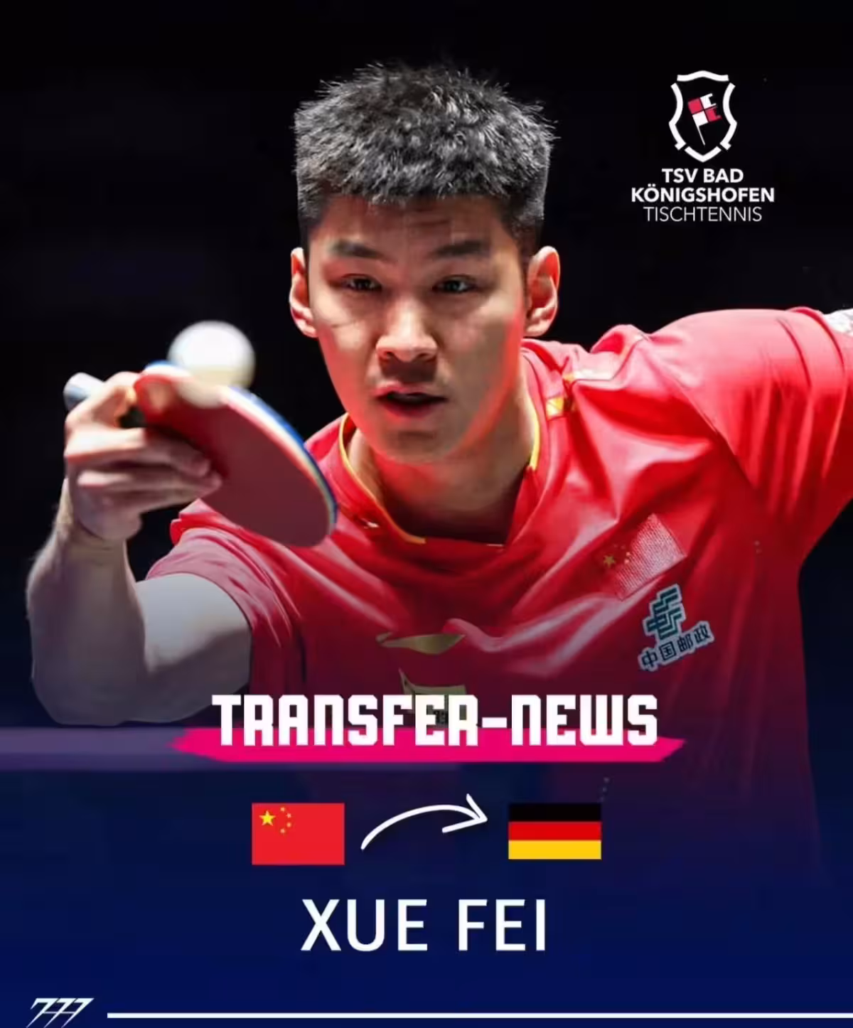 2025年11月28日,德國桌球甲級聯賽(德甲)巴特柯尼希斯霍芬俱樂部官宣中國國乒選手薛飛加盟,這一消息讓國際乒壇目光聚焦。作為繼樊振東之後本賽季第二位征戰德甲的現役國手,這位直板新星將以第一單打身份扛起球隊保級大旗,其加盟也實現了俱樂部主席Andreas Albert引進中國球員的多年夢想。