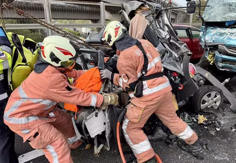 國道3號7車連環撞!64歲男「未保持距離」 30歲男受困車內