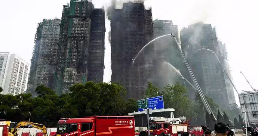 宏福苑大火釀成嚴重死傷,現場樓宇結構受損,警方與房署持續進行搜證與安全評估。(圖/達志/美聯社,下同)