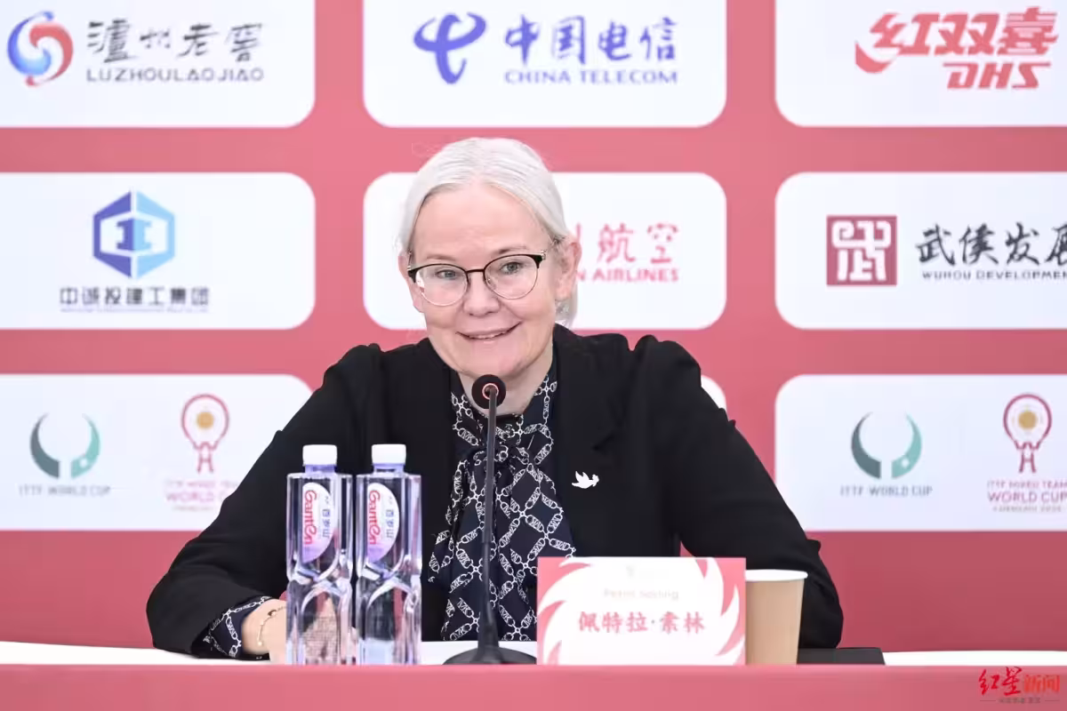 12月1日下午,成都混團世界盃召開了新聞發布會,國際乒聯主席佩特拉·索林表示,「我們在成都開創性地提出了混合團體世界盃這一全新的概念,讓男女選手團結一致、並肩作戰,共享每一分,共擔團隊責任。混團世界盃是團隊精神的最高體現,在這項賽事中沒有任何一個選手能夠獨自取勝,男女運動員、新秀和老將都必須相互信任,彼此補充,共同為每一分而戰,這也正是桌球團體項目的精髓所在。」