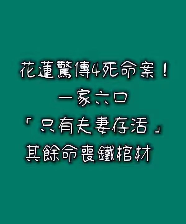 快訊/花蓮驚傳4死命案!一家六口「只有夫妻存活」 其餘命喪鐵棺材!