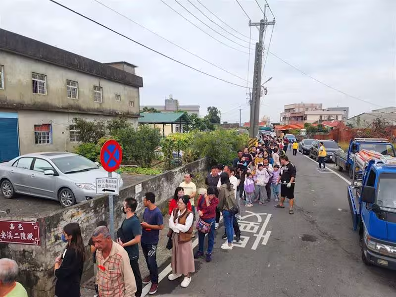 全台唯一炸油鍋!於朦朧17惡人慘了,粉絲寫下17位嫌疑人名單,請求城隍爺將他們「炸」起來為於朦朧申冤。圖為千人排隊等著被城隍爺「炸」掉小人、厄運。