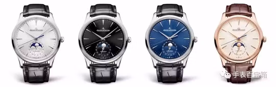 新款的超薄大師月相腕錶,12點鐘位置的JL logo 是立體的,這是第一個不同;3、9、12點鐘的時標新款的要更長,這是第二個不同;再看看月相盤,新款的月相上繁星更密,凸顯出明月高懸、繁星繚繞的效果,日期指針的樣式也有所不同。