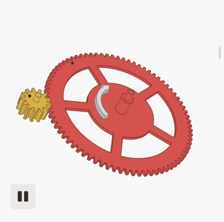 兩個匹配齒輪的一個重要參數是它們的齒數。一個齒輪上的齒與另一個齒輪上的齒互相咬合,因此在單位時間內兩個齒輪旋轉相同的齒數。如果兩個齒輪的齒數不同,則這兩個齒輪完成一次旋轉所需的時間往往不同。在下面的演示中,您可以更改驅動紅色齒輪和從動黃色齒輪之間的齒數比,以查看它如何影響該黃色齒輪的旋轉速度: