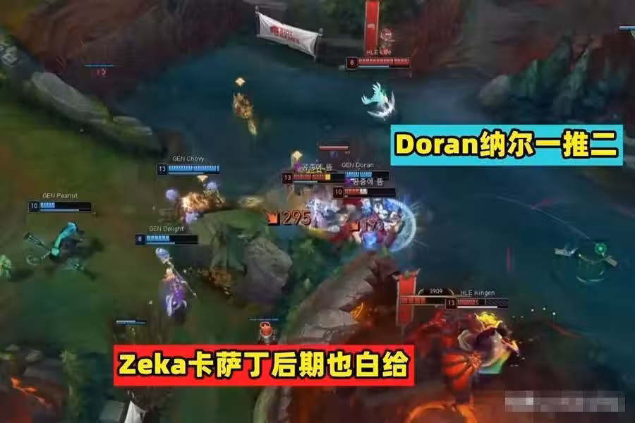 反觀viper下路這邊,他們也選用了LCK相當火熱的AD輔助,試圖用寒冰來破局。但即使是GEN的小AD新人Peyz,viper也依舊壓不住,這不禁令人想起了尺帝,如果尺帝沒走,viper這下路怕不是又要被線殺帶穿。再看看上路的Kingen,用「平庸」兩個字來形容他其實是最合適的,在對陣Doran之時, 他最亮眼的操作就是第三場打出了兩個單殺,但在團戰之時,Kingen的作用可謂是微乎其微。