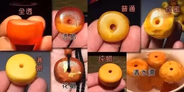 3、透明度是反映琥珀質量的一個很直觀的指標,緬甸琥珀的透明度可分為透明、亞透明、半透明、微透明和不透明。一般來說,透明度越高、質地通透的琥珀質量越好(但完全透明的琥珀比較少,而且多數塊頭小,大而透明的緬甸琥珀是非常珍貴的)。也有例外,最具代表性的就是蜜蠟,蜜蠟微透明到不透明,其質地溫潤,色彩靚麗,所謂「色如蜜,質如蠟」,是很不錯的品種。質量好的蜜蠟價值也極高。