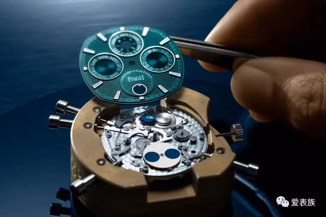 伯爵首次為標誌性的 Polo 系列配備了機械萬年曆。最新的 Piaget Polo 延續了超薄機芯的傳統,擁有厚度僅為 4 毫米的 1255P 萬年曆機芯,這款Polo將奢華的翡翠綠色錶盤上華與時尚前衛的運動腕錶融為一體。