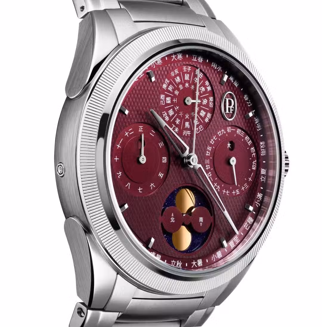 帕瑪強尼成功將所有這些複雜功能集成於錶盤之上:小時和分鐘;農曆月份顯示;閏月(例:每三年一閏);小月(29天)或大月(30天);二十四節氣,太陽沿黃道(從地球上觀察的太陽運動軌跡)每運行15°即為一個節氣;年份指示和名稱;生肖、五行,並用交替的顏色展示其陰陽屬性;日期以及月相。表殼中段兩側設有各種調校按鈕,可方便快速完成腕錶校準。