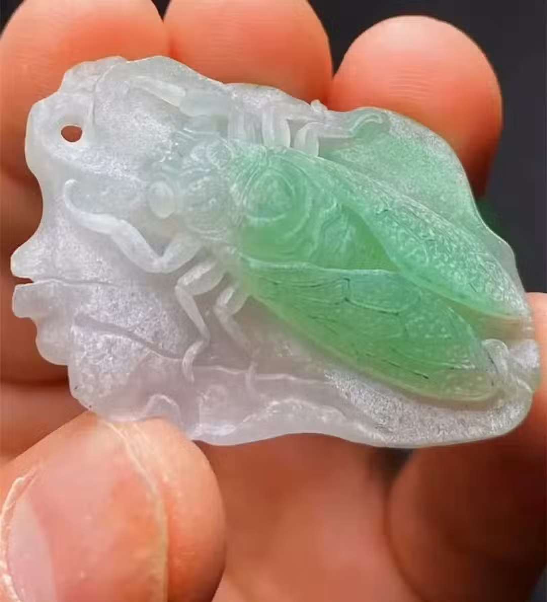 翡翠訂製作品,關於蟬的題材,寓意一鳴驚人