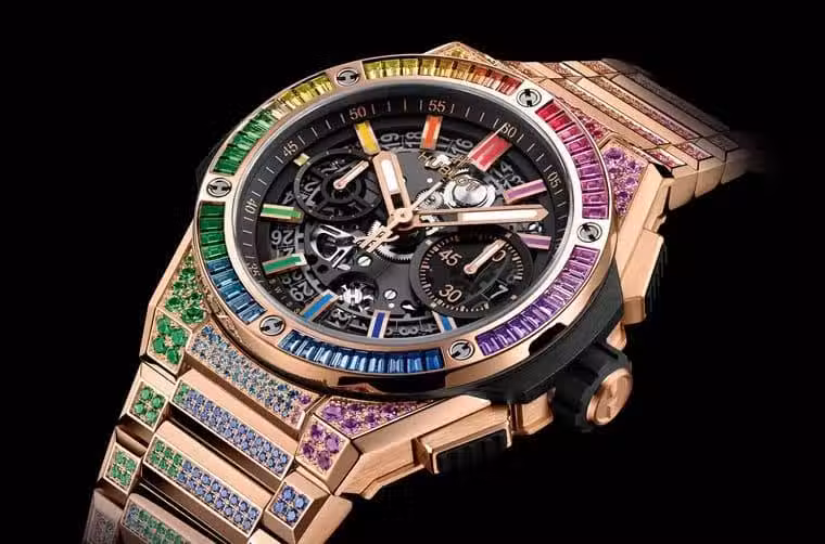 宇舶大爆炸鍊帶手錶鑲滿彩色寶石搭配皇金錶殼絢麗登場