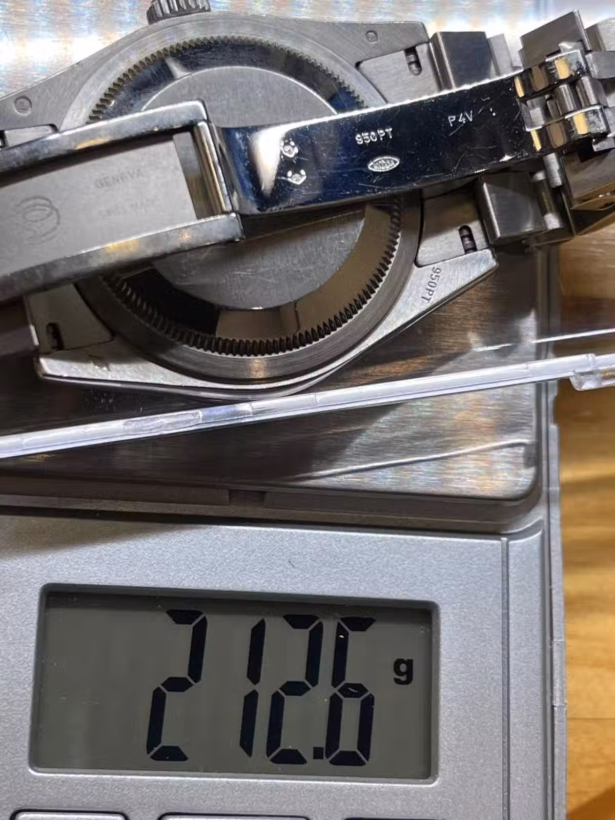 這可能是我見到最重的金DD,以36的尺寸能到新款40黃金的重量,22節表帶能達到212克,這是非常離譜的數字,要知道正常的118238也就170g+,PT950其兩個特點,硬度高和密度高,穩定性也是超強不存在氧化的情況。