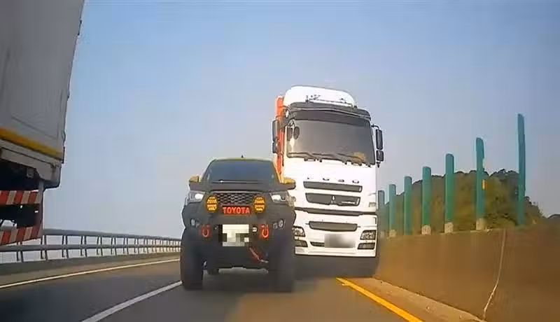 2噸皮卡「對決」10噸貨車飆台61線互不讓 網見悽慘下場諷:好有勇氣