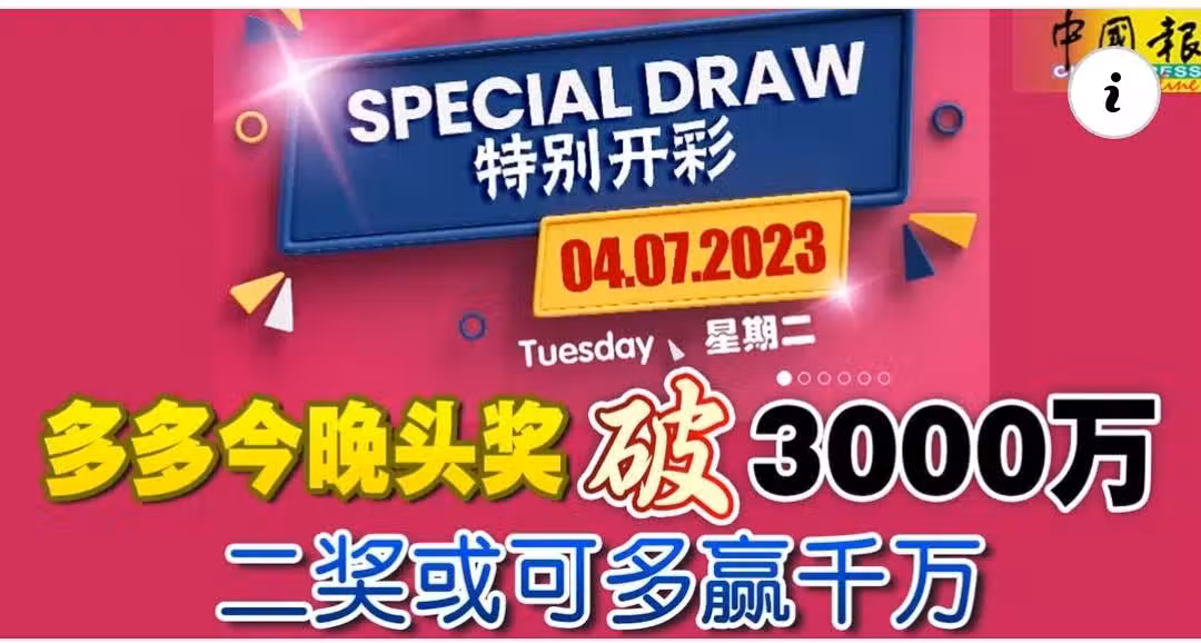 多多今晚頭獎破3000萬 二獎或可多贏千萬