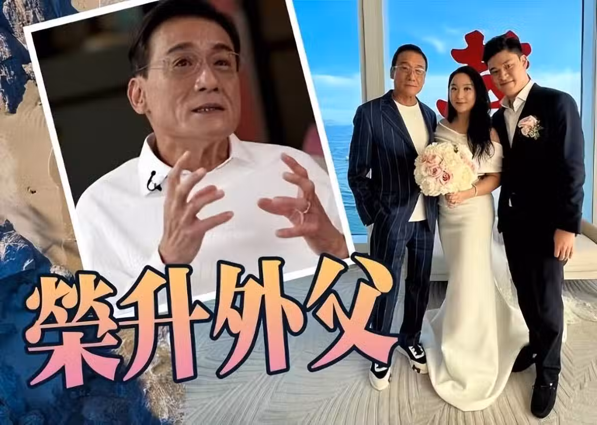 從曝光的婚禮現場照中,梁家輝與女兒女婿站在一塊,畫面十分溫馨有愛。 照片中梁家輝穿著條紋西裝,頭髮梳得很整齊,戴上眼鏡,時尚又沉穩,完全不像是65歲的人。