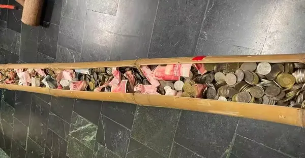 真的敲竹槓!160公分竹筒「塞滿硬幣紙鈔」有夠狂 剖開細數「多到2個人數不完」羨煞上萬網友