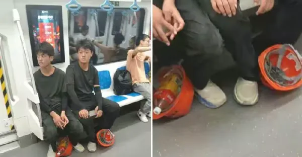 捷運遇兩年輕男生,渾身塵土縮角落...瞥見腳邊「紅安全帽」,心下一嘆:後半輩子不好過了