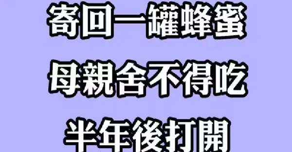 女兒遠嫁國外三年未歸,寄回一罐蜂蜜母親捨不得吃,半年後打開報了警