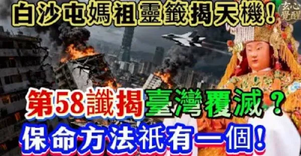 白沙屯媽祖震怒降簽!第58簽揭「台灣災劫」即將爆發,唯一保命方法曝光!