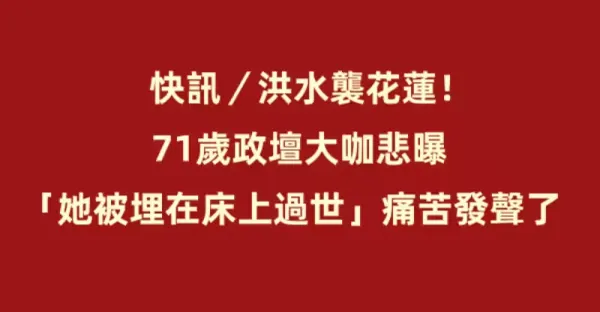 快訊/洪水襲花蓮!71歲政壇大咖悲曝「她被埋在床上過世」痛苦發聲了!