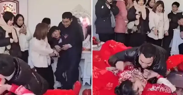 婚禮現場伴郎「硬趴在新娘身上」,新郎卻被眾人嬉笑阻,網見他「抬頭1表情」怒了:就是故意的