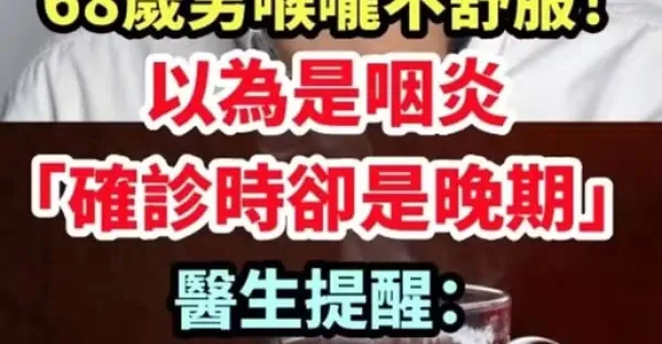喉嚨不舒服以為是咽炎 ,68歲男「確診時卻是晚期」,醫生提醒:不要每天都喝「這種飲料了」