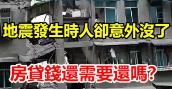 向銀行貸款房貸,地震發生時人卻意外沒了,房貸錢還需要還嗎?長知識了
