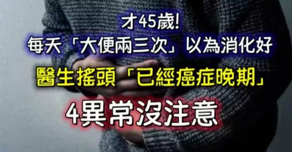 才45歲 他每天「大便兩三次」以為消化好 醫生搖頭「已經癌症晚期」4異常沒注意