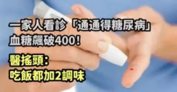 一家人看診「通通得糖尿病」 血糖飆破400!醫搖頭:吃飯都加2調味要注意了