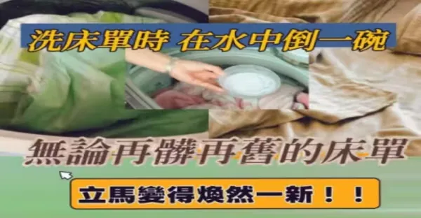 洗床單時,在水中倒一碗,無論再髒再舊的床單立馬變得煥然一新.