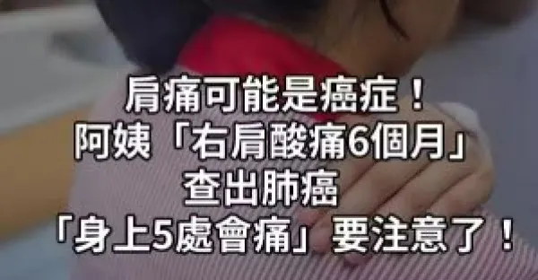 肩痛可能是癌症!阿姨「右肩酸痛6個月」查出肺癌 「身上5處會痛」要注意了!