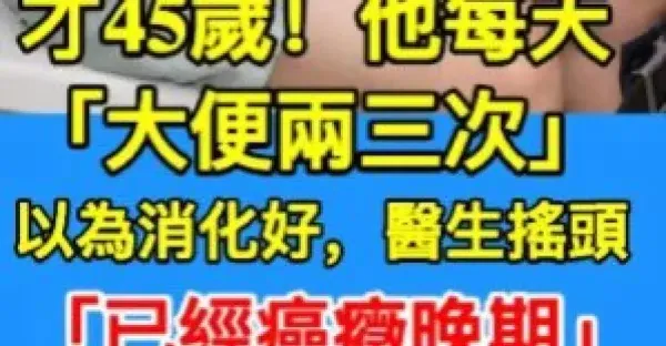 才45歲!他每天「大便兩三次」以為消化好,醫生搖頭「已經癌症晚期」,4個異常沒注意!