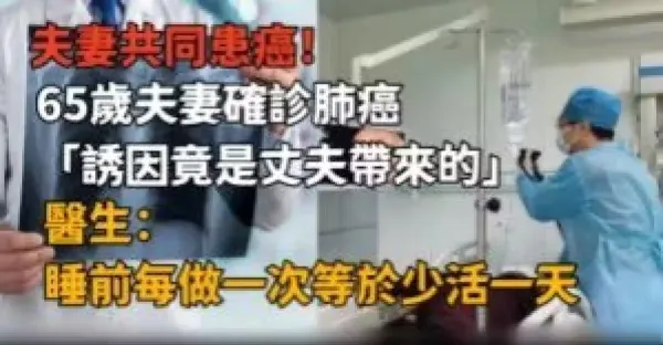 夫妻共同患癌!65歲夫妻確診肺癌「誘因竟是丈夫帶來的」, 醫生提醒:睡前每做一次等於少活一天