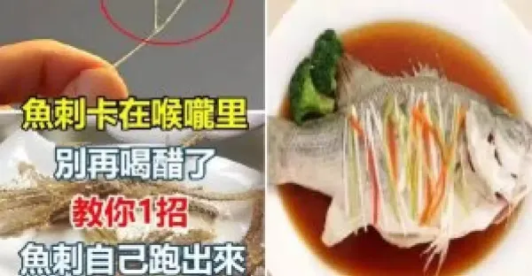 魚刺卡嗓子裡,千萬別喝醋吞米飯 簡單一招魚刺自己「跑出來」~