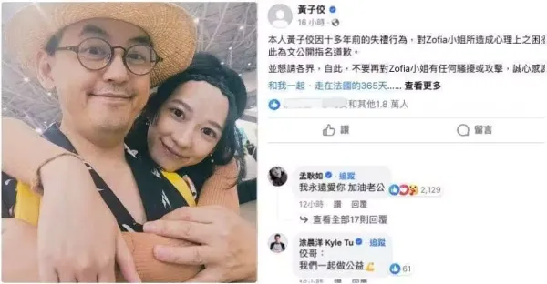 沈寂8個月!黃子佼「突大動作公開指名道歉」 小19歲妻發聲「堅強曝未來動向」告白惹鼻酸:永遠愛你!