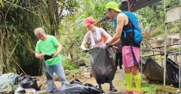 梁洛施上山撿垃圾,素顏嫩白似少女,與TVB視後做義工賣力幹活