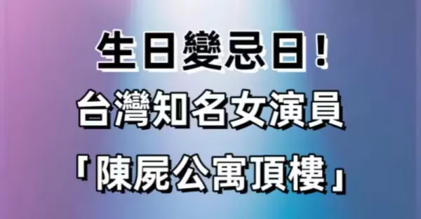 生日變忌日!台灣知名女演員「陳屍公寓頂樓」