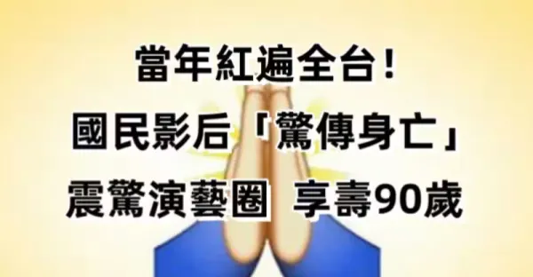 當年紅遍全台!國民影后「驚傳身亡」震驚演藝圈 享壽90歲