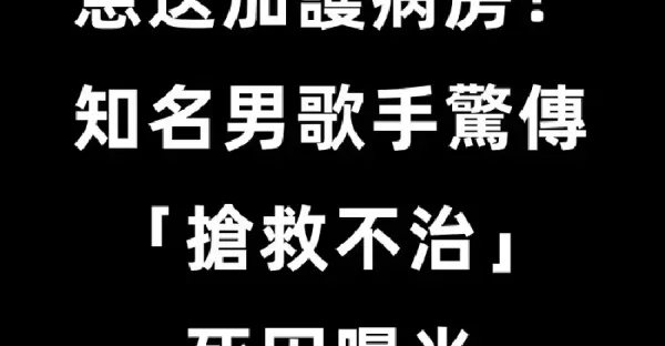 晚間快訊/急送加護病房!知名男歌手驚傳 「搶救不治」死因曝光