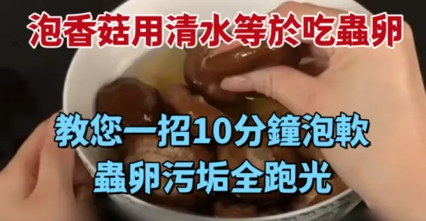 泡香菇用清水等於吃蟲卵、教您一招,10分鐘泡軟,蟲卵污垢全跑光