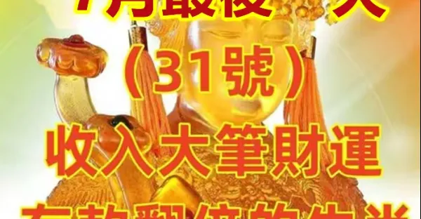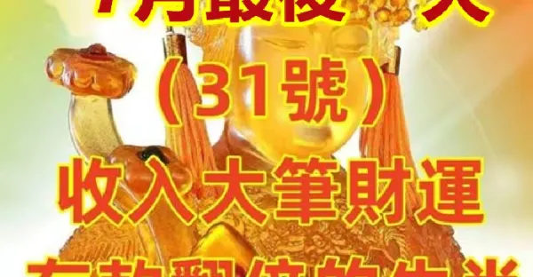 7月最後一天(31號)收入大筆財運,存款翻倍的生肖~