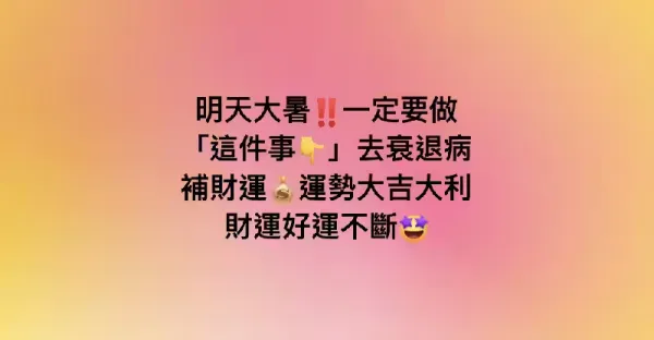 明天大暑,一定要做「這件事」去衰退病 補財運,運勢大吉大利, 財運好運不斷!