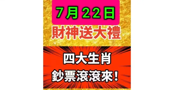 7月22日 財神送大禮!四生肖 「 鈔票滾滾來」