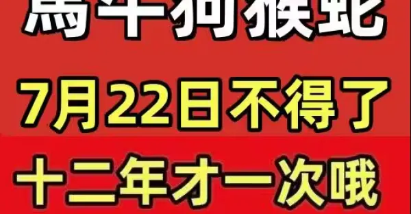生肖(馬牛狗猴蛇)火了,7月22日不得了,十二年才一次哦