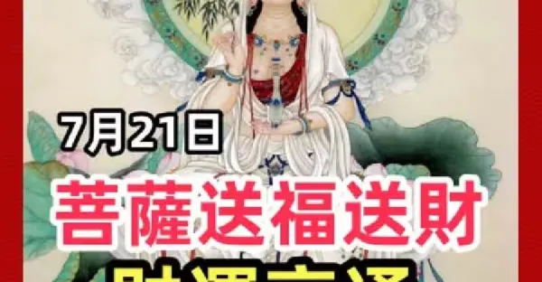 7月21日菩薩送福送財,六大生肖財運亨通,事事順利~
