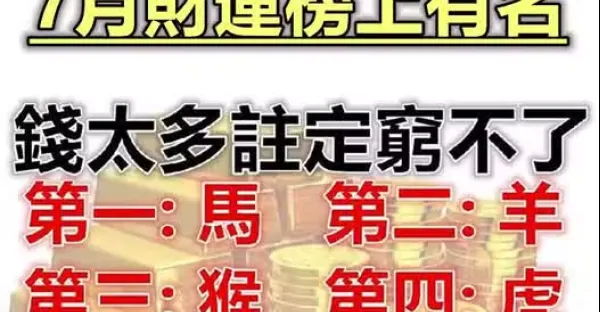 7月財運榜上有名,錢太多註定窮不了的四大生肖!